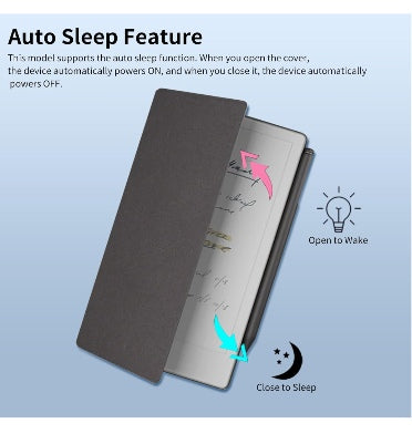 This case is equipped with an auto sleep function. The device automatically turns ON when you open the cover and turns OFF when you close it.