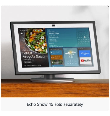 Designed for flexible placement of the Amazon Echo Show 15. The stand is crafted from anodized aluminum and features a sleek finish. Amazon Echo Show 15 sold separately.
