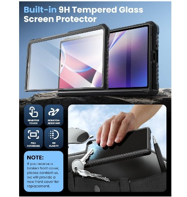 - [Built-in Tempered Glass Screen Protector] Built-in 9H tempered glass screen protector prevents scratches and cracks to screen without compromising touch sensitivity.