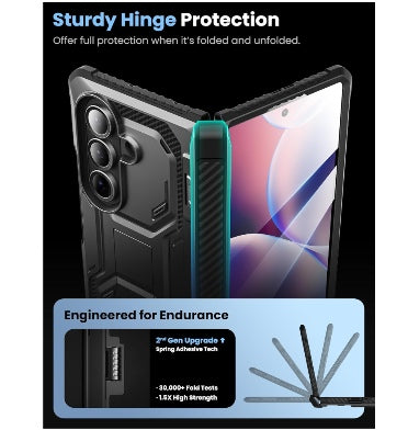 - [Rugged Hinge Protection] Auto-rotate spring provides complete protection for hinge without affecting the free folding of the phone, while anti-slip side grips for extra security.