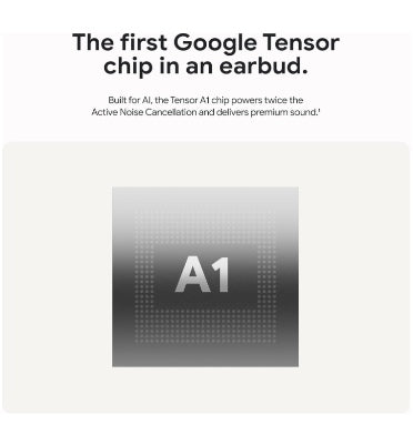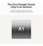 Built for Google AI, the Tensor A1 chip runs 90 times faster than the speed of sound to power twice the Active Noise Cancellation and deliver premium sound.