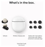 - What's Included: Earbuds, Wireless charging case, Eartips with 4 size options: extra small, small, medium (attached to earbuds), large