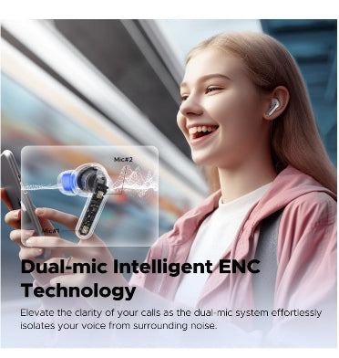 Say goodbye to distorted calls and focus on your conversations with confidence. The innovative directional sound transmission focuses the microphone on your voice, capturing every word with precision. The dual microphone in each wireless earbuds setup effectively suppresses ambient noise, delivering clear and crisp calls for both you and the person on the other end. Stay connected with crystal-clear call quality, no matter where you are.
