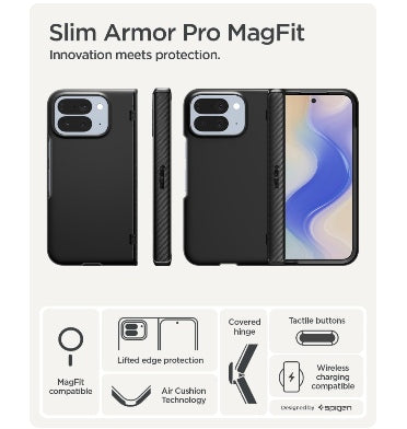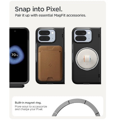 Defend your Pixel. The Slim Armor Pro MagFit case standardizes quality and durability for your Pixel. Its sleek design is anything but starved. Bolster your Pixel with full hinge coverage and drop protection that's out of this planet. Never fold when it comes to protection. Now compatible with Pixelsnap to unlock new magnetic accessories for your Pixel.
