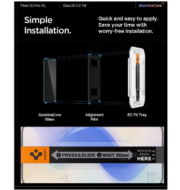 Be a hero. Save your screen and your time. EZ Fit makes installing a screen protector hassle-free. Use the tray to align the screen protector onto your Google Pixel, press down, and you're good to go. Easy does it.