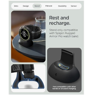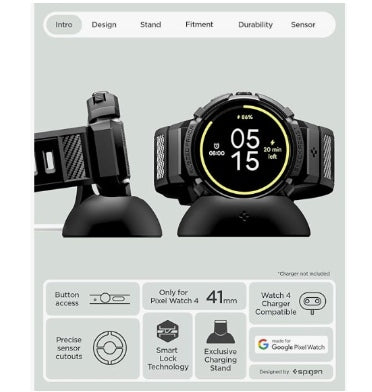 GOOGLE PIXEL WATCH 4 PREMIUM RUGGED ARMOR PRO CASE 41MM BLACK WITH CHARGER STAND | SPIGEN