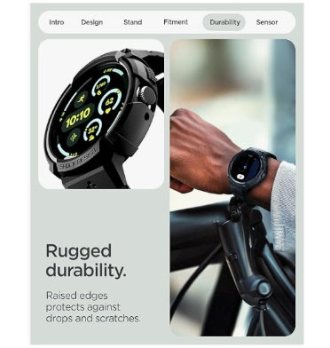 Rugged both inside and out. The Rugged Armor Pro comes in a uni-body frame that includes an adjustable band with a protective cover for the watch. Made of a flexible yet durable material, the case handles all unwanted impact while staying extremely easy to put on and remove. Bolster the watch with defense with the all-new Rugged Armor Pro.
