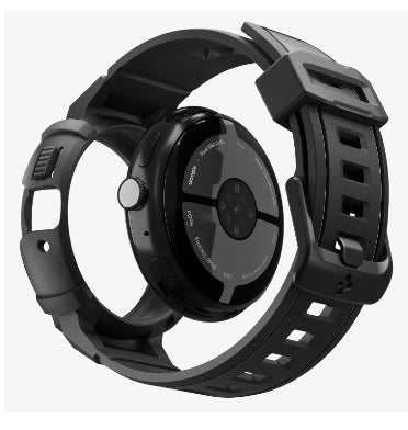 GOOGLE PIXEL WATCH 4 PREMIUM RUGGED ARMOR PRO CASE 45MM BLACK WITH CHARGER STAND | SPIGEN