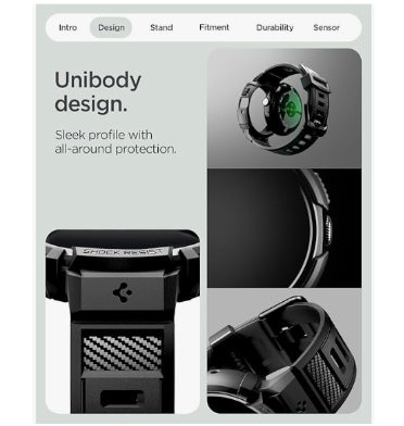 - Rugged design: Unibody case with unique carbon fiber accents absorbs shock, keeping your watch safe from bumps and scratches