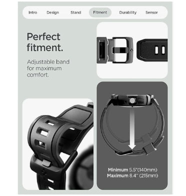 Rugged both inside and out. The Rugged Armor Pro comes in a uni-body frame that includes an adjustable band with a protective cover for the watch. Made of a flexible yet durable material, the case handles all unwanted impact while staying extremely easy to put on and remove. Bolster the watch with defense with the all-new Rugged Armor Pro.