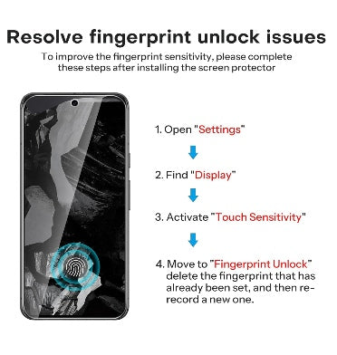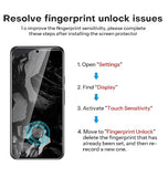 - Touch Sensitive: Only 0.33mm in thickness maintains original response sensitivity and touch feeling. (Kindly Note: If the fingerprint doesn’t work after installing the screen protector, please delate your old fingerprint and enroll new one, then it will work)