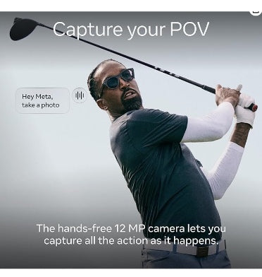 The hands-free 12 MP camera lets you capture all the action as it happens. With just a “Hey Meta” or a press, you can always get the shot.
