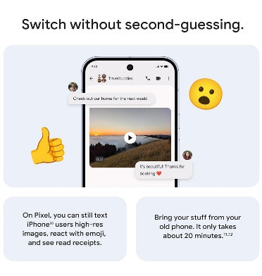 Move contacts, photos, iMessages, and more without losing a thing. It only takes about 20 minutes. And if you use Google Password Manager, you can access your passwords once you sign in.