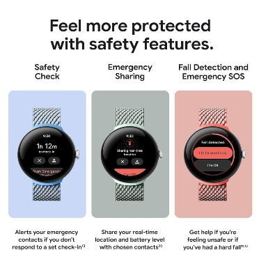 If you’re feeling unsafe, your Pixel Watch 2 can easily alert trusted contacts or 911 with Emergency SOS.*