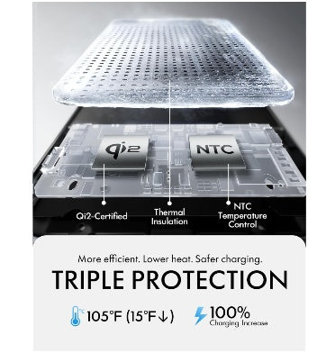 Charge your iphone 17 up to 50% in just 1 hour with advanced lithium-polymer technology and NTC temperature control, twice as fast as other portable chargers. Note: 15W wireless, 22.5W wired charging; speed decreases after 75%.Not compatible with non-MagSafe cases (may cause heating)