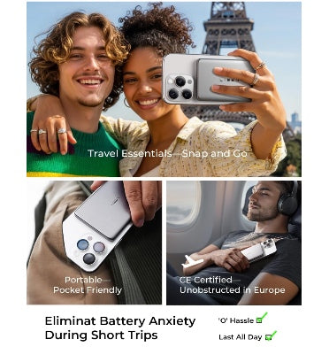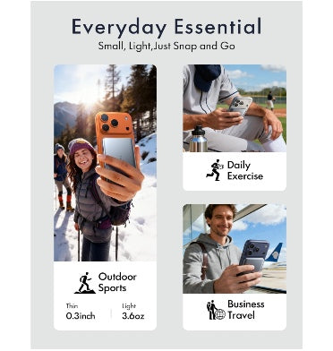 With 5,000mAh capacity, this MagSafe charger keeps you powered through meetings, adventures, or travel without adding extra burden. 12N Powerful Magnet,Snap it on and go! Ultra-thin design that doesn't add any weight. Perfect for commuting to class, traveling, taking photos, attending parties, and concerts.