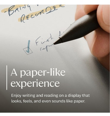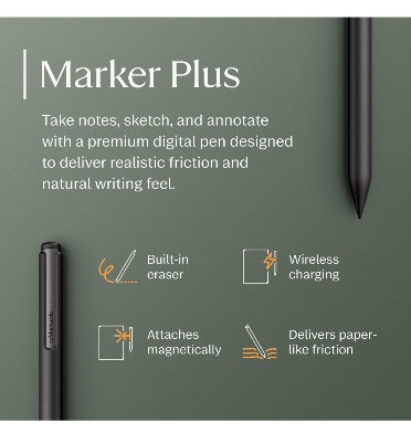 When two become one it looks like this. Meet the Marker that magnetically clips onto the side of your paper tablet, and wakes up the display as soon as you lift it. You could say it feels like magic. Enjoy a display that looks, feels, and even sounds like paper. And digital tools, like converting handwriting to typed text, selecting and moving work, or layers to show or hide work, make this kind of paper, well, different.