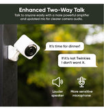 - Audio: Speaker: 99dB, waterproof | Simultaneous 2-way Talk: Yes | Built-in Siren: Yes | Noise & Echo Cancellation: Yes