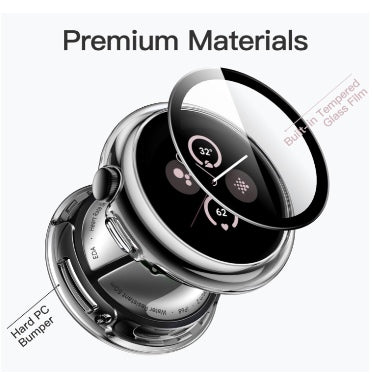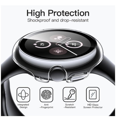 GOOGLE PIXEL WATCH 2 PREMIUM PROTECTIVE CASE/SCREEN PROTECTOR BLACK/CLEAR 2PK