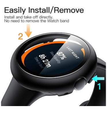 - [Effortless Installation] With a snap-on design, you can install the protective case with screen protector directly to your Watch without taking off the watch band