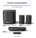 Roku Streambar is the ultimate 2-in-1 entertainment upgrade with powerful streaming and premium sound for any TV. Hear every detail as you stream the newest and most popular channels in vibrant 4K HDR picture quality. Crisp, clean audio makes dialogue easier to hear and with its compact design, you’ll be amazed at how something so small can fill your room with sound. You can even quiet loud commercials automatically, plus stream your favorite music and more with Bluetooth®. Setup is simple with everything you need in the box, including the Roku voice remote that controls your TV, sound, and streaming. Roku Streambar also works with popular voice assistants. Ask your Alexa or Google Assistant-enabled device to launch channels, search for entertainment, control your streaming, and more. Plus, it’s easily expandable for even bigger sound. Add deep, rich bass with Roku Wireless Subwoofer and immersive surround sound with Roku Wireless Speakers (sold separately). There’s no need to run cables across your living room. Just plug in these speakers and subwoofer and wirelessly pair them for even better sound.