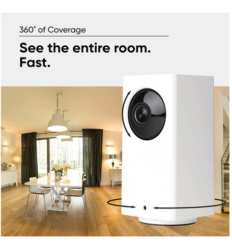 Use the control panel in the Wyze app to pan and tilt the camera for a 360° live view. Pinch zoom the live stream screen to zoom up to 8x. You can adjust the rotation speed (up to 110° per second) in the Wyze app.