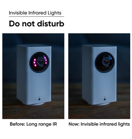 You know those red dots that turn on when a camera switches to night vision and it looks like The Terminator? Yeah, ours doesn't do that. Wyze Cam Pan v2 lights stay invisible so they don't disturb furry friends or baby Sarah Connors.