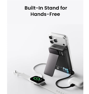 The all-new built-in kickstand keeps your phone steady and at the perfect angle — ideal for watching, scrolling, or video calls while charging wirelessly.