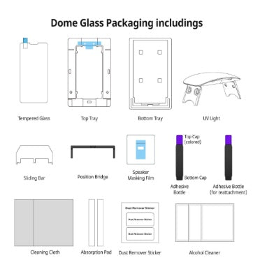 - Dome Glass provides 4F: Full Cover, Full Touch, Full Clear, Full Fix.