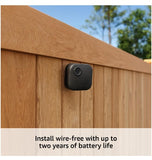 Wire-free smart security camera, two-year battery life, two-way audio, HD live view, enhanced motion detection. Works with Alexa.