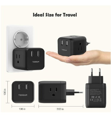 EUROPEAN 5in1/USA TRAVEL PLUG ADAPTER WITH USB PORT | TESSAN