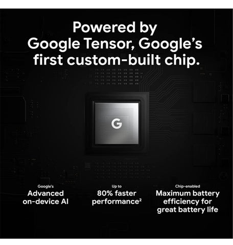 The first processor designed by Google and made for Pixel, Tensor makes the new Pixel phones our most powerful yet. Google’s advanced on-device AI for features only Google can deliver. Built-in best-in-class computational photography for amazing photos and videos. Integrated industry-leading security for added protection. Up to 80% faster performance for speed and responsiveness. Chip-enabled maximum power efficiency for great battery life.