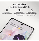 - Display: 6.7" QHD+ (1440 x 3120) LTPO OLED at 512 ppi | Smooth Display (up to 120 Hz2) | Corning® Gorilla® Glass Victus™ cover glass | Always-on display with At a Glance and Now Playing