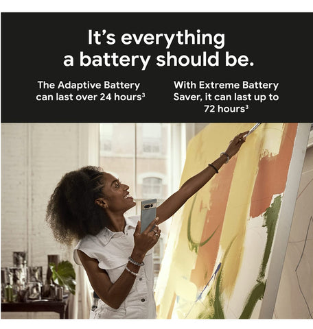 Pixel’s Adaptive Battery can last over 24 hours. Turn on Extreme Battery Saver, and the battery can last up to 72 hours. And your Pixel charges super fast.