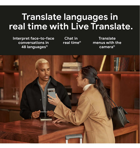 With Live Translate, you can interpret face-to-face conversations in 48 languages, chat in real time, and translate menus with your camera.