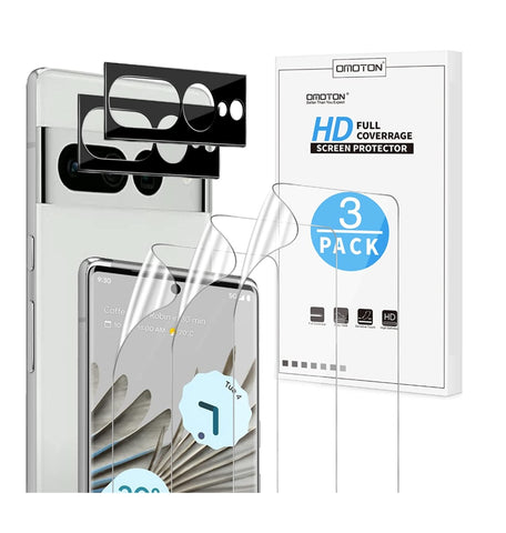 GOOGLE PIXEL 7 PRO PREMIUM FILM SCREEN PROTECTOR AND CAMERA LENS PROTECTOR 5PK | OMOTON