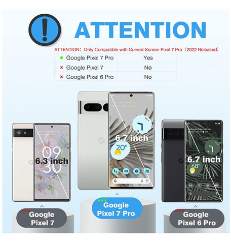 - [Case Friendly]: TPU soft front screen protector fit great with the curved edge of Pixel 7 Pro. Precise edge cutting makes the screen protector perfectly compatible with most cases