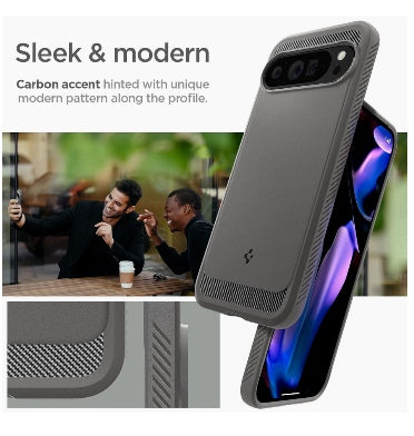 Rugged refined. The Rugged Amor is refinished with timeless design and protection for your Pixel 9. Tried and true, its modern and sleek carbon fiber detailing is built to take a punch. Be ready to take on the daily beat.
