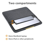 - Laptop sleeve has 2 compartments, and a carry pouch for accessories