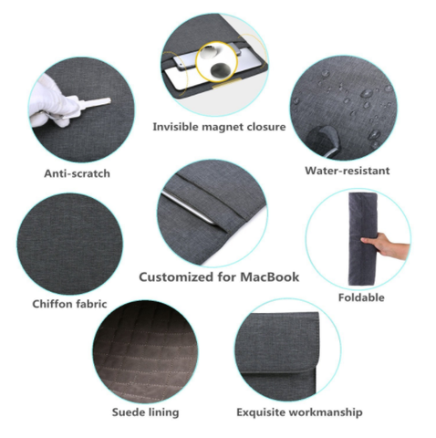 - Made of smooth and light chiffon fabric with soft felt lining, water-repellent, shockproof & anti-scratch