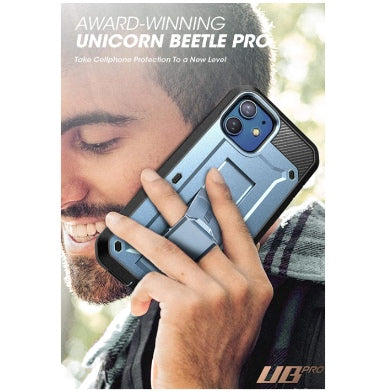 The UB Pro provides reliable rugged protection for your iPhone 12 & 12 Pro 6.1". Constructed in two parts, it features a front rugged piece with raised edges to keep your screen up off surfaces and a back piece that’s made of both shock-absorbing TPU and hard, drop-resistant materials. This dual-layer system fits together securely. Additionally, this case features an integrated screen protector that won’t interfere with touch sensitivity and a hands-free holster for convenience.