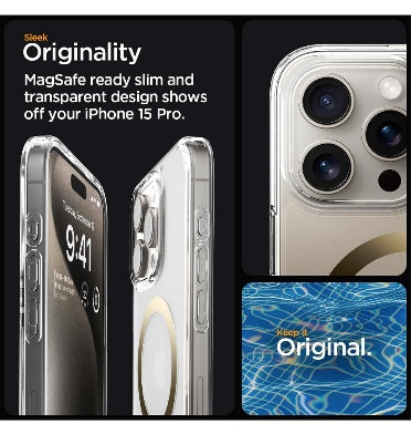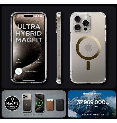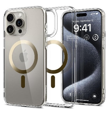 IPHONE 15 PRO PREMIUM ULTRA HYBRID MAGFIT CRYSTAL CASE CLEAR/GOLD | SPIGEN