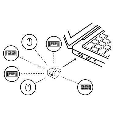 Connect up to 6 Logi Bolt wireless keyboards and mice to one computer with a single Logi Bolt receiver and forget the hassle of multiple USB receivers. Plus, keep one wireless keyboard/mouse set in each workspace, then simply move your laptop into range. No need to carry or commute with mice or keyboards.