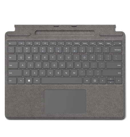 Next-level versatility comes in the perfect, premium keyboard, featuring a large glass touchpad and luxurious, Alcantara® material covering. Ready to pair with Surface Pro 8 and Surface Pro X. Surface Slim Pen 2 (sold seperately) stores securely and recharges in the built-in storage tray.