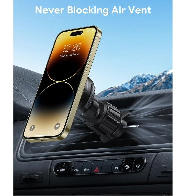 - [Perfect driving setup] With a 360° ball mount, effortlessly adjust your device to the perfect angle for talking, navigating, charging, listening to music, and more. DriveSafe magsafe car vent mount is also designed to fit most vertical and horizontal air vents, while allowing normal ventilation.