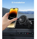 OMOTON magsafe car mount has has a dual-mounting system with ring of powerful N52 magnets paired with an advanced vacuum suction cup. 3.6 times stronger than regular options! Phone stays securely in place while driving, no matter what. This mount will provide a safer, easier, faster driving experience to you!