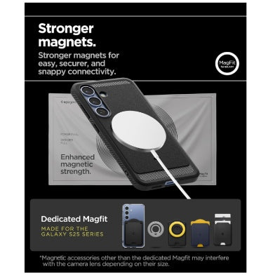 - Spigen magnet cases designed for S25 Series might not be fully compatible with