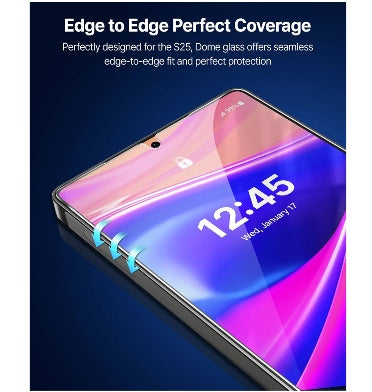Your S25 will be free from shocks, drops and scratches. Because the hard premium Dome Glass will protect the screen to the maximum by adhering to the screen with liquid adhesive. Dome Glass provides all-round protection to the edge. Also, it is made from superior 9H high quality tempered glass that is scratch resistant and shatterproof to protect your device.