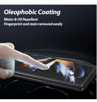 The screen protector is durable and reliable, with a 9H hardness rating and a scratch-resistant surface. It also has an oleophobic coating that repels oil and water, preventing stains and smudges. It is compatible with most cases and accessories for your Galaxy Z Fold 5.