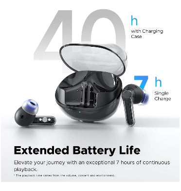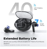 With a 40-hour battery life, SoundPEATS Clear earbuds alleviate power anxiety and provide up to 7 hours of listening time on a single charge. The charging case offers an additional 5 recharges for prolonged music playback. The game mode keeps sound and images in sync and allows you to distinguish positions for an immersive